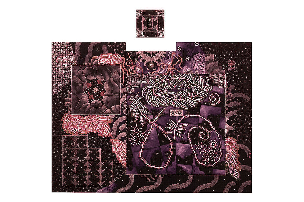 Garden at Midnight is a series of mid- to large-scale mixed media paintings on wood panels—9 extant in various stages of completion. The style of this series draws on vernacular architecture along with personally derived symbolic landscape and decorative elements, driven by myth/story/poetry. The intensely detailed surfaces along with paint that reflects light and encourages fairly dramatic shifts in color gives the effect of jewel-like miniatures done in grand scale.